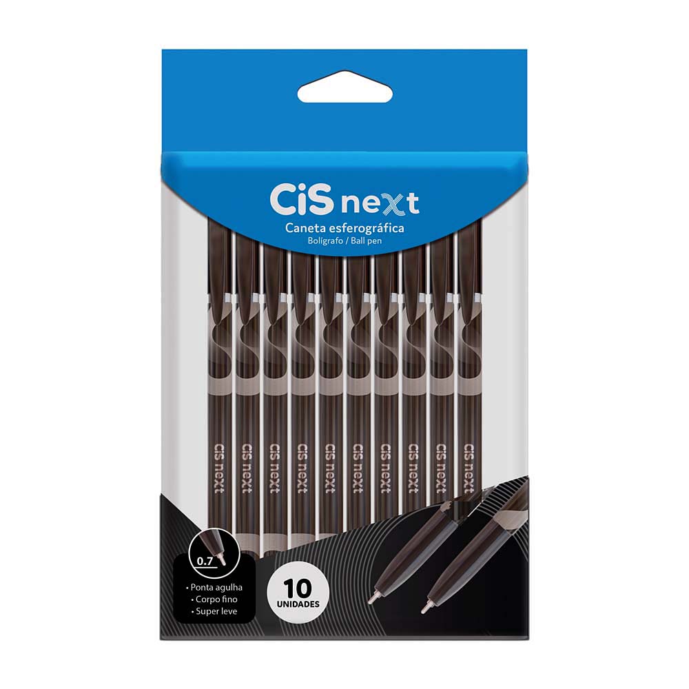 Caneta Esferográfica Cis Next Preta 10 Unidades 0.7mm